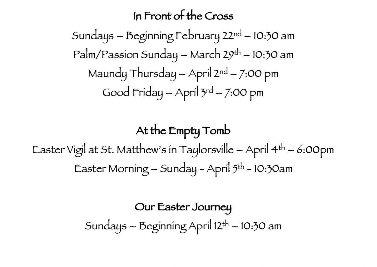 A Lenten Devotion and discussion on the artwork used for the season will be led by Kylie Jones-Greenwood before Worship at 10AM on Sundays in Lent and on Palm/Passion Sunday.