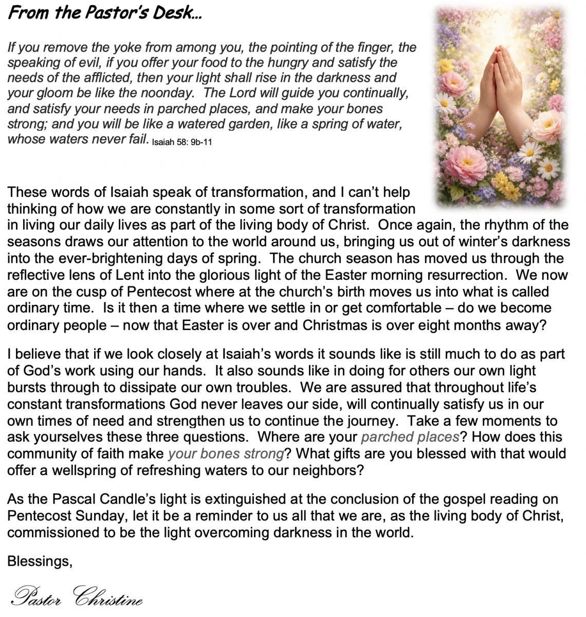 From the Pastor's Desk May 2026