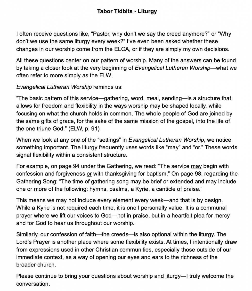 © Mount Tabor Lutheran Church | Website courtesy of Lever Pulley