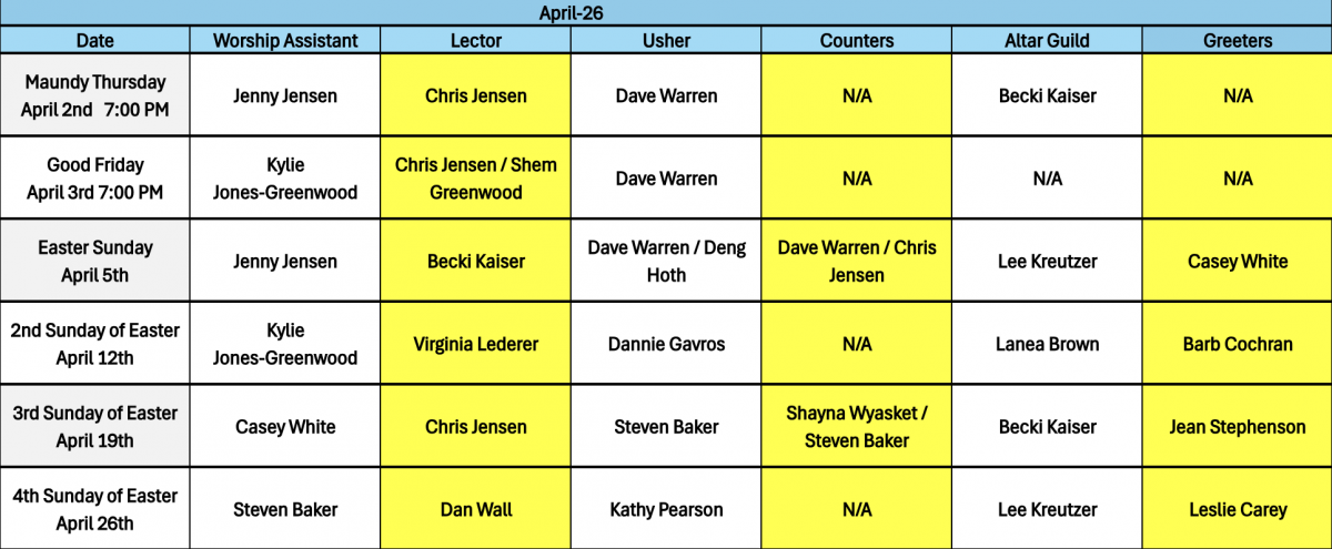 Worship Assistants April 2026