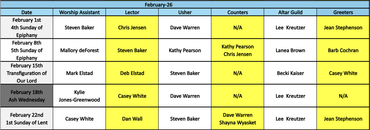 Please remember that it's your responsibility to find a replacement and to let Pastor Christine and Kristin know.