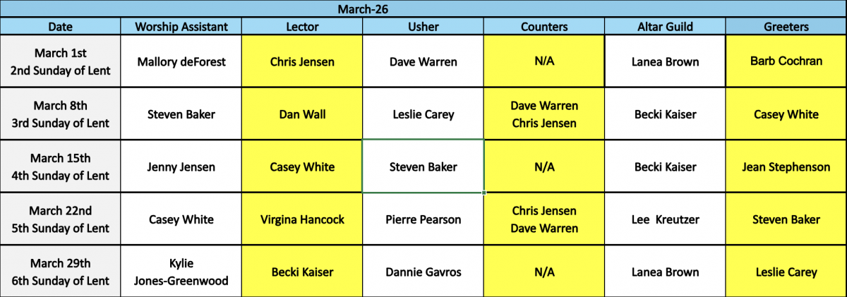 Worship Assistants March 2026